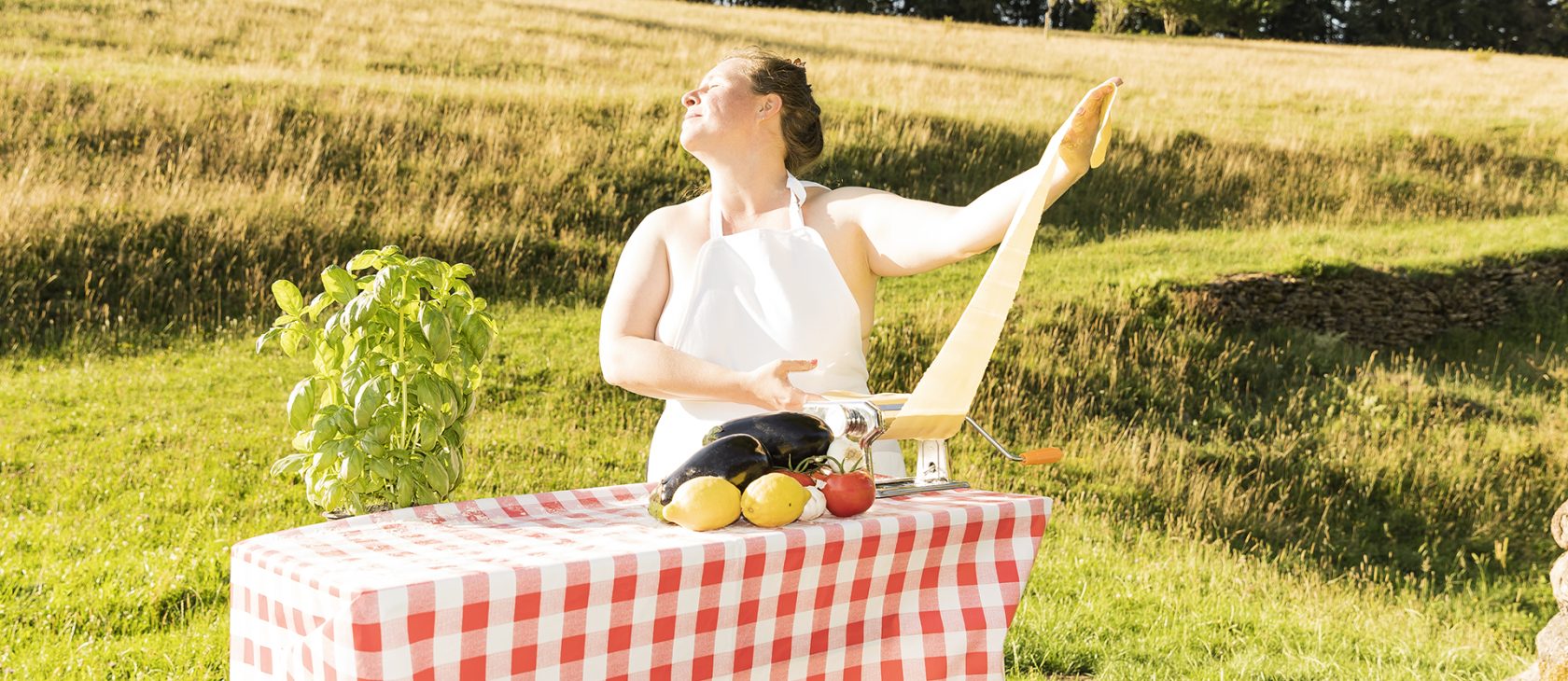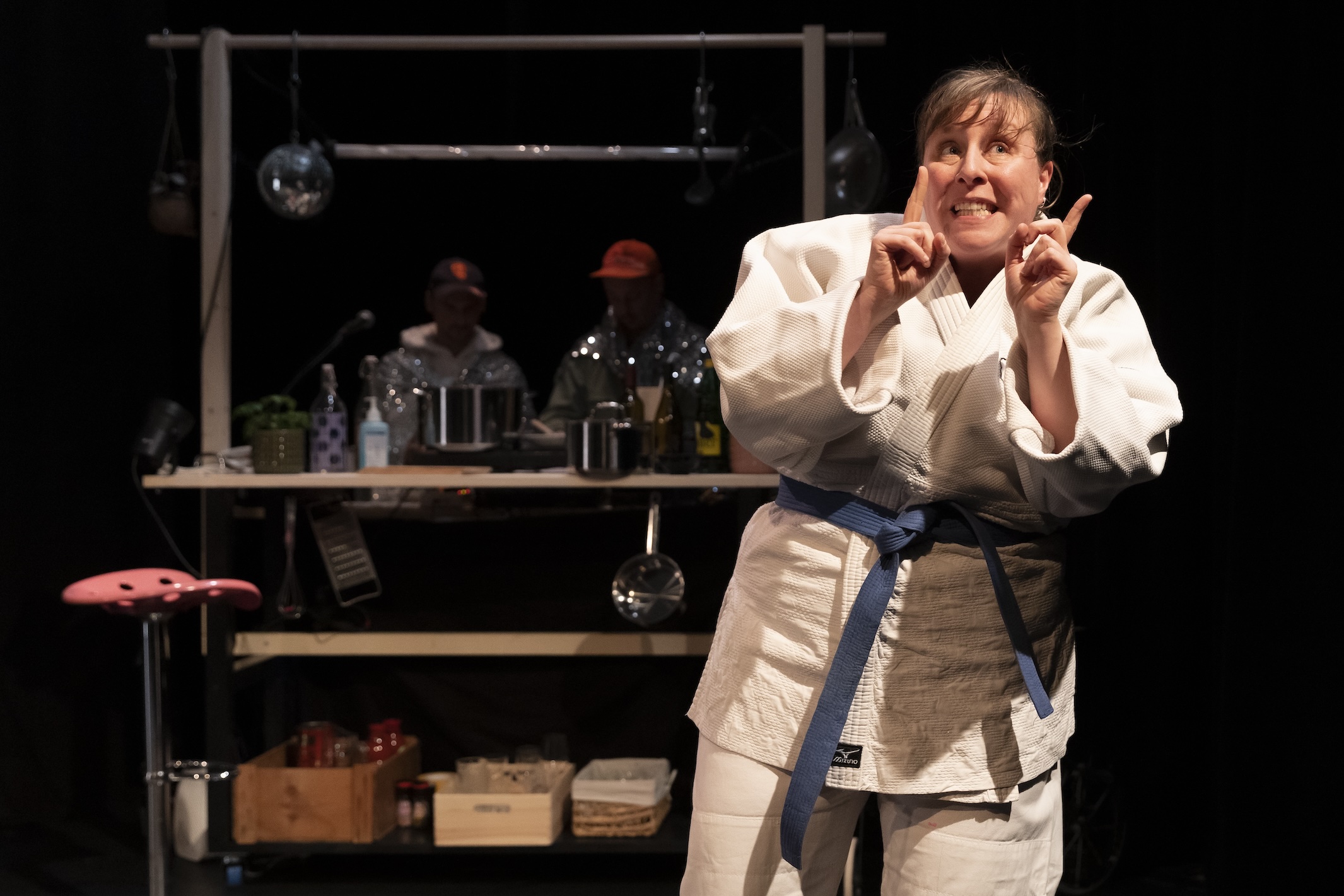 Ce spectacle tisse des liens entre le théâtre, la petite et la grande cuisine, nos ventres et nos vies (sans oublier l’ananas sur la pizza). En questionnant avec humour la figure de la bonne ménagère véhiculée par la marque Betty Bossi, il valorise l’émancipation et nous rappelle que le chemin du cœur ne passe pas uniquement par l’estomac.